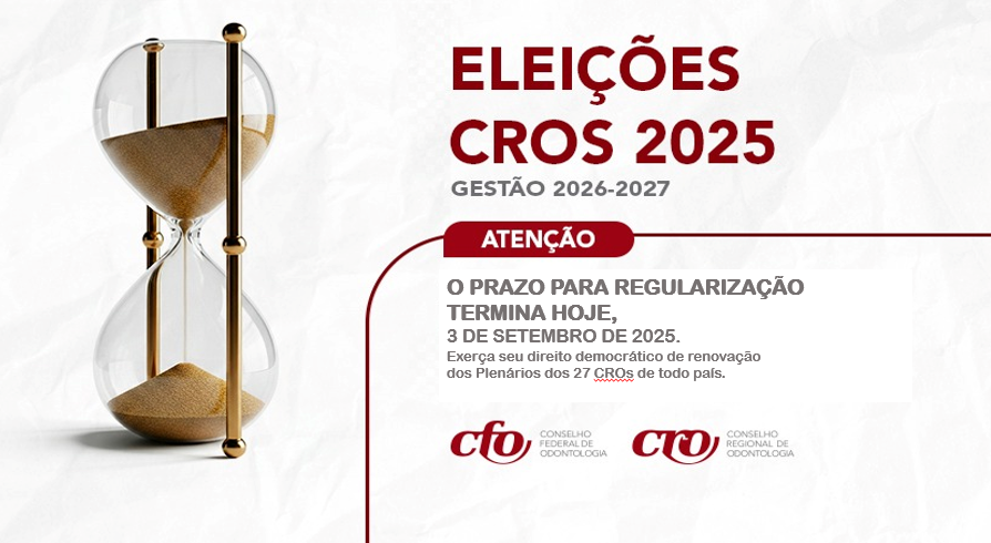 O Sistema Conselhos de Odontologia realiza, no dia 3 de outubro, a Eleição 2025 para renovação dos Plenários dos Conselhos Regionais. O processo eleitoral ocorrerá nos 27 CROs e elegerá os membros dos plenários para a gestão 2026/2027. A Eleição 2025 será realizada de acordo com o Regimento Eleitoral do Conselho Federal de Odontologia, aprovado por meio da Resolução CFO nº 267, de 2024.